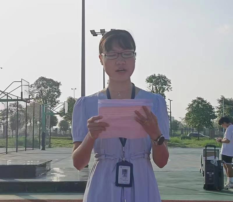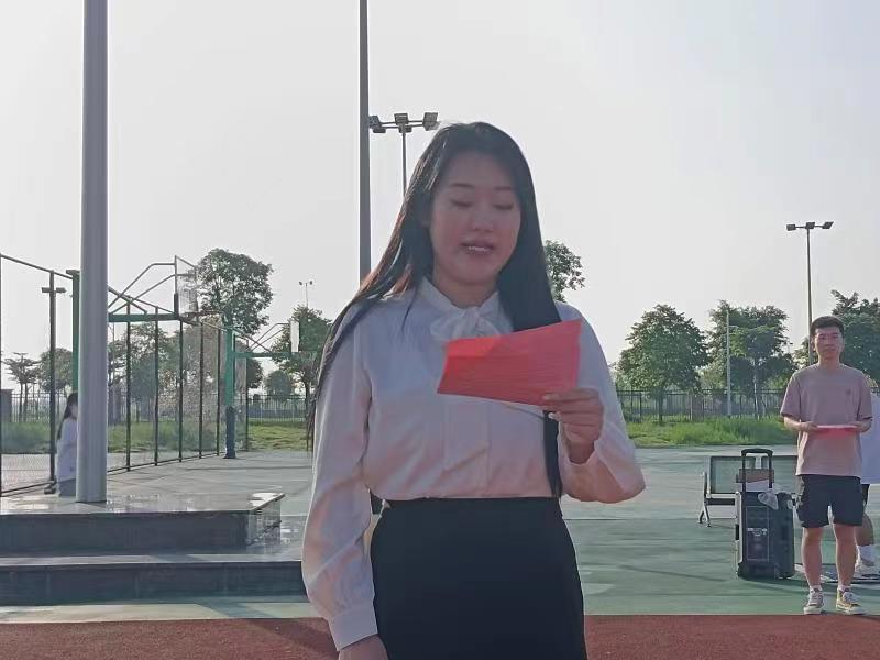 艺术与传媒学院播音2204班学生代表赵薇在国旗下发言,她表示青春筑梦,强国有我,青年一代的我们要始终与时代同向同行、共同前进,要牢记“厚德 博学 自强 弘毅”的校训,勇担时代使命,争做有为青年,不负时代,不负青春,努力成长为堪当民族复兴重任的时代新人。