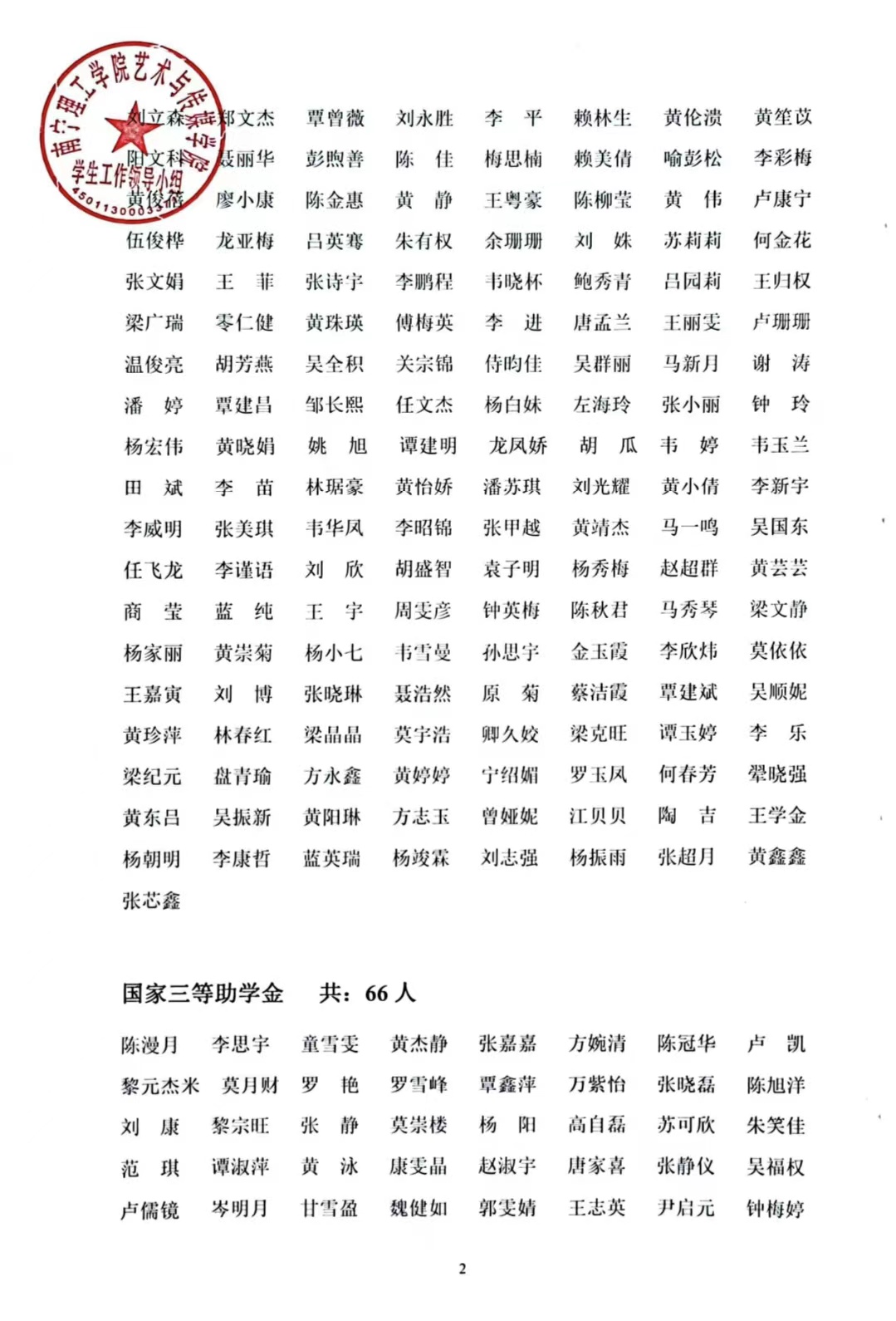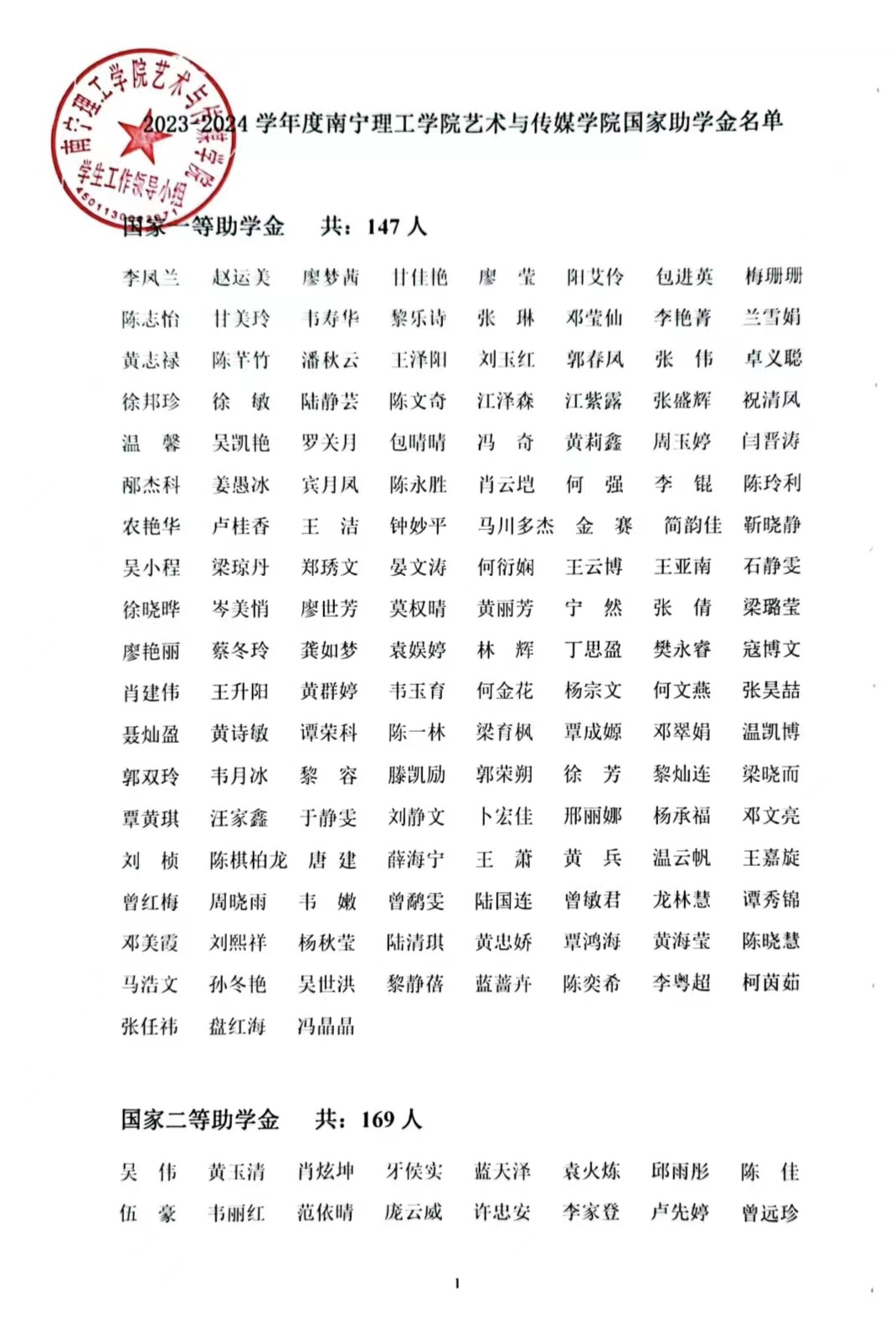 【艺传印迹】关于2023一2024学年度南宁理工学院艺术与传媒学院国家助学金名单的公示