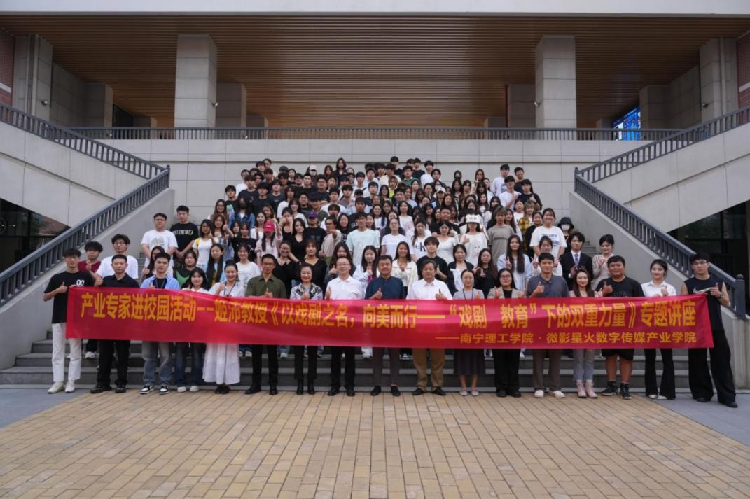 随后,在南宁理工学院南宁校区图书馆一楼学术报告厅,姬沛教授主讲了一场题为《以戏剧之名,向美而行——“戏剧+教育”下的双重力量》的学术讲座,深入浅出地探讨了戏剧与教育融合的独特魅力和深远影响。特别值得一提的是,广西大学艺术学院院长胡红一作为特邀嘉宾出席了此次活动。