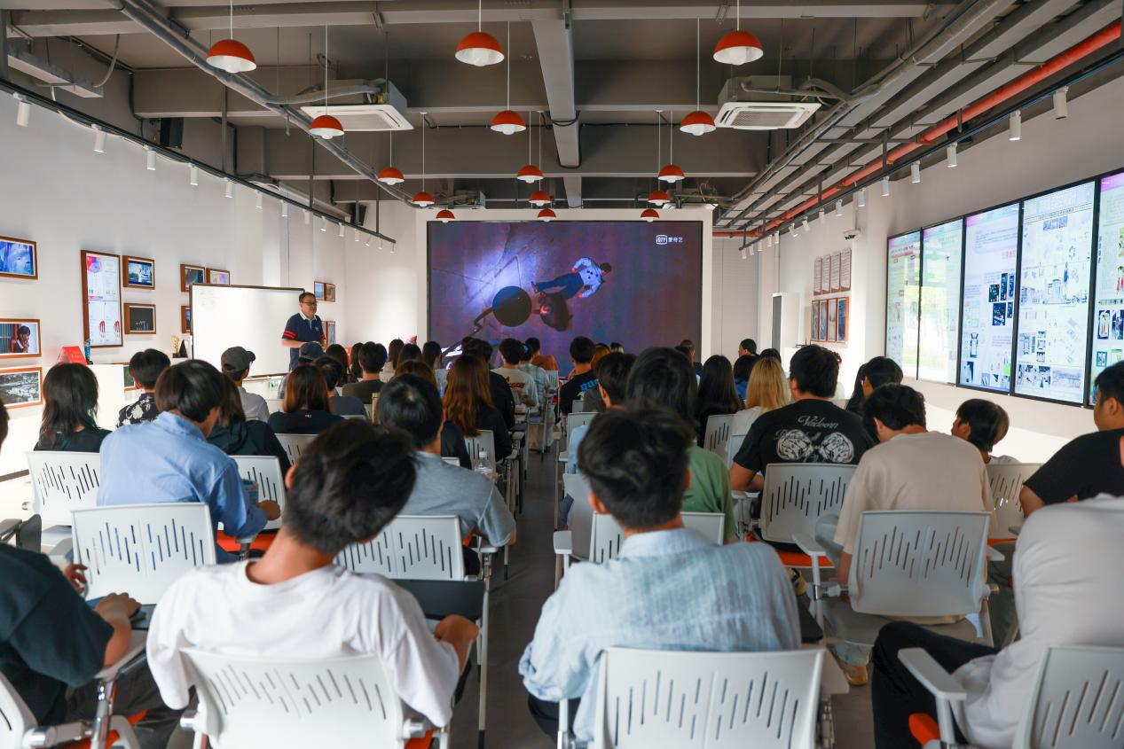 随后,唐培林作题为“影像艺术中的光线语言”的演讲。他从专业角度系统解析了光位、光质、光色、光动四个维度的技术特征与艺术价值。通过《肖申克的救赎》《山海情》《一代宗师》等经典影视作品的片段赏析,他深入浅出地阐释了不同光线运用对作品主题表达、叙事结构、人物刻画和意境营造的关键作用。在设计创意实训室打造的沉浸式教学环境中,与会师生积极互动,围绕影像用光的技术创新与艺术表现等专业问题展开了深入交流。