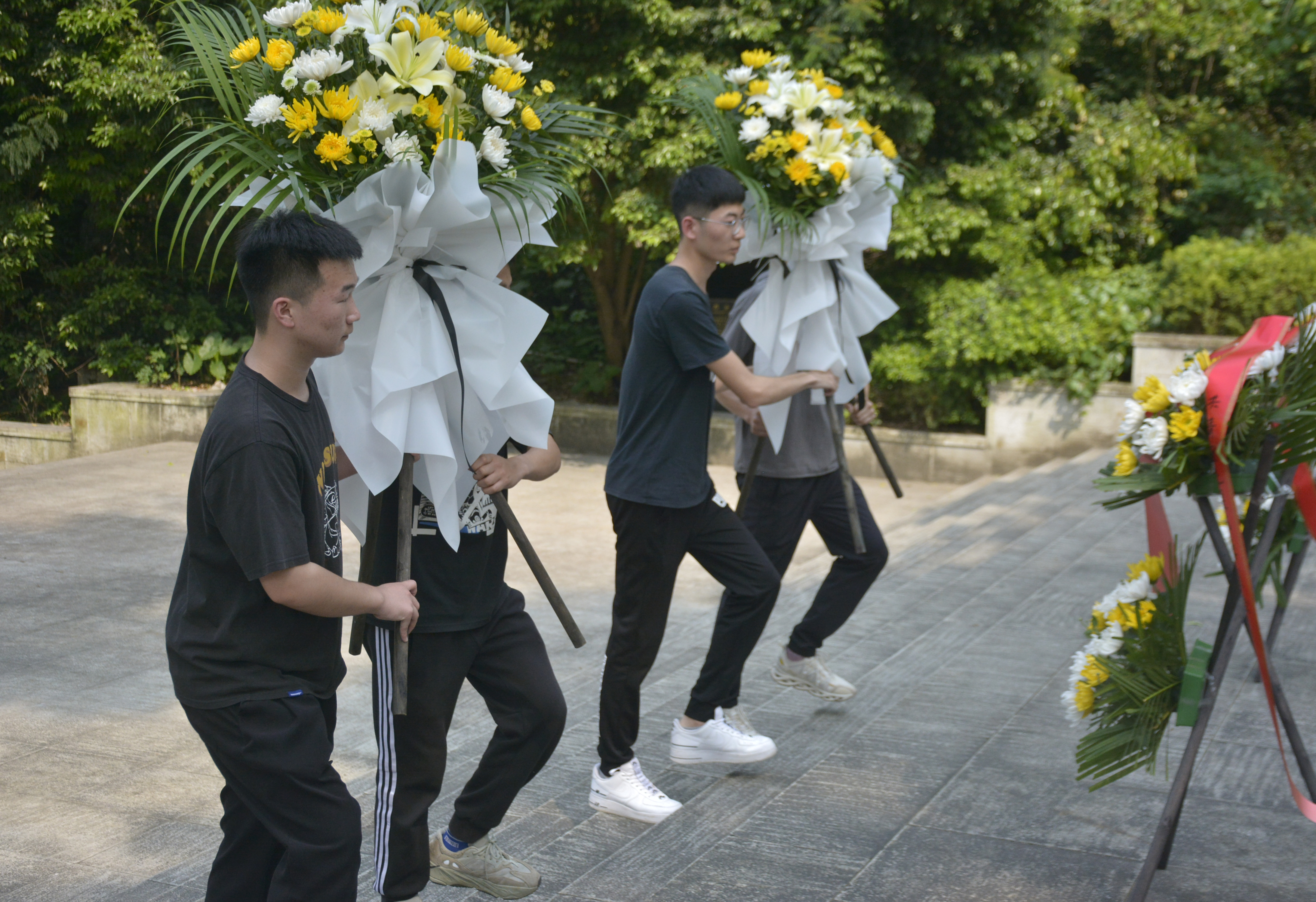 活动伊始,全体成员整齐的站在陈光烈士纪念塔前,举行隆重的悼念仪式,学生党员代表介绍陈光烈士的光荣事迹,哀悼陈光烈士的爱国主义精神,随后学生党员代表敬献花圈,全体同志默哀三分钟,并向烈士鞠躬和敬献鲜花,重温入党誓词。接下来,全部同志移步到第二个地点即三将军及八百壮士墓,党员代表向全体同志简要介绍烈士事迹,并敬献花篮,全体成员默哀三分钟,向烈士三鞠躬并敬献鲜花。最后,教师党员代表做总结发言,勉励大家继承先烈革命传统,发扬前辈爱国精神,用丰富的知识武装自己,为实现中华民族伟大复兴而奋勇拼搏。