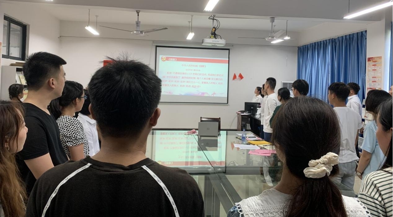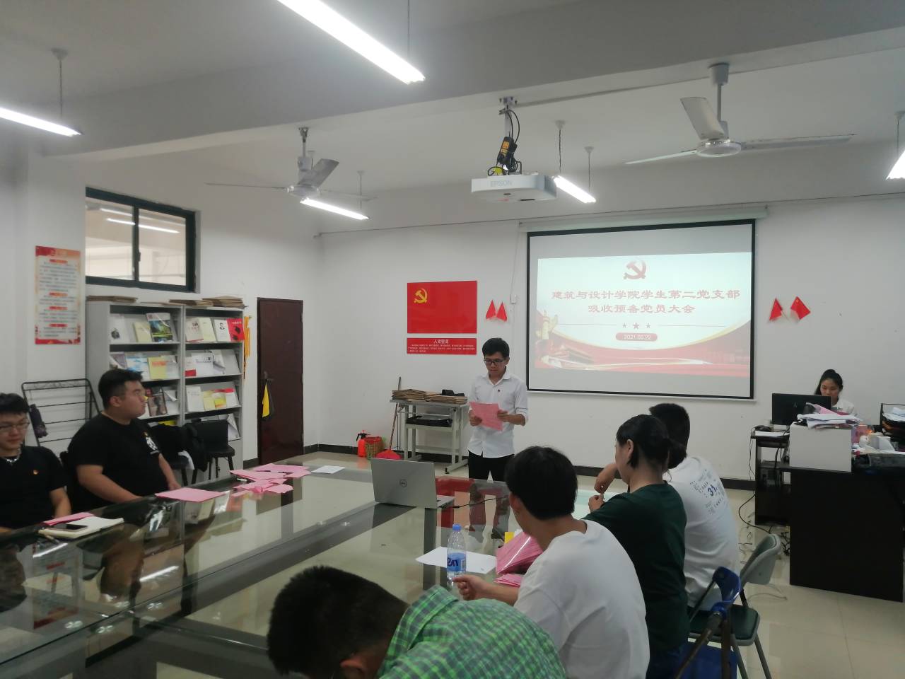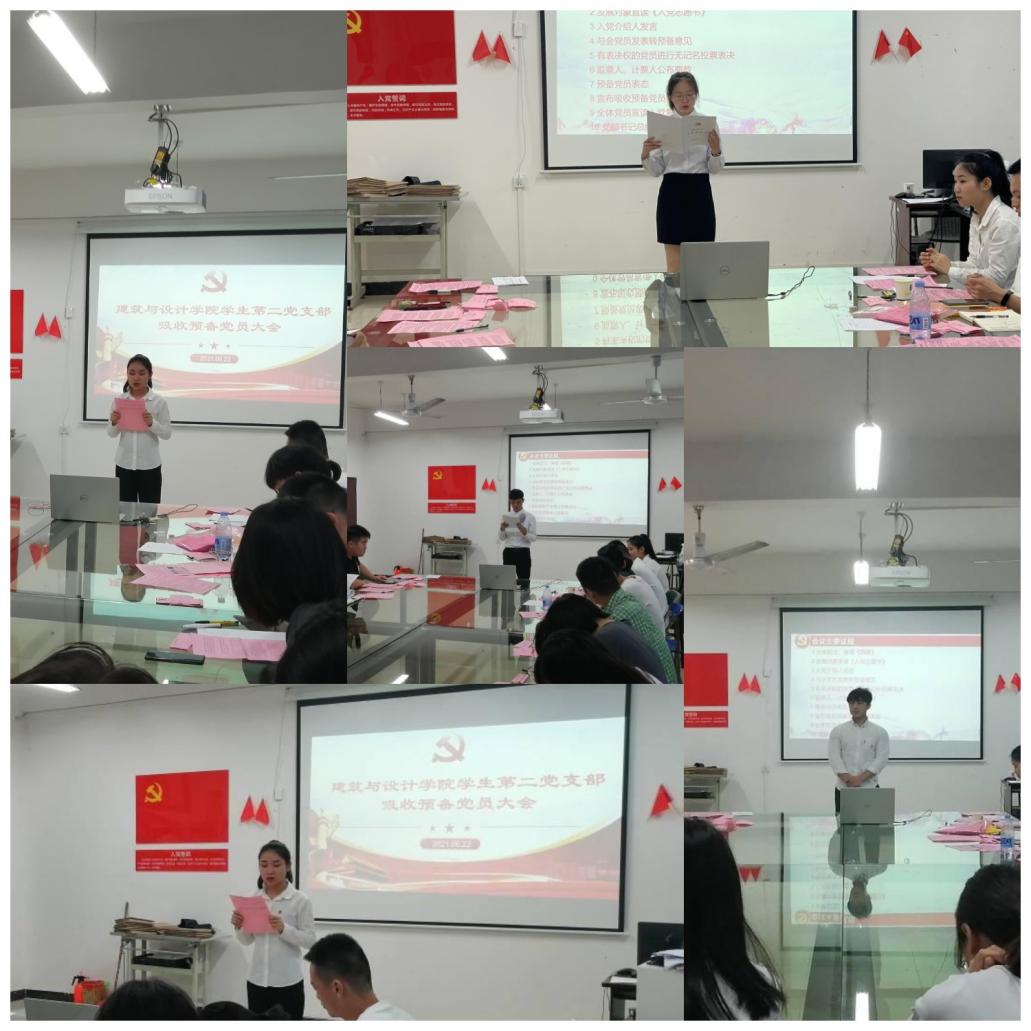此次会议主要讨论接收叶同芳等16名发展对象为中共预备党员的问题。会议严格按照党组织接受预备党员程序,会议伊始,全体起立奏唱《国歌》,16名发展对象依次向党组织汇报自身对党的认识、入党动机、个人经历以及在校表现等,随后入党介绍人向大会介绍其主要政治思想、学习、工作生活等情况,支部书记向大会报告其现实表现的考察情况以及综合政治审查情况,与会党员对发展对象是否符合党员条件发表了意见。大会认为叶同芳等16名同志基本符合党员条件,经与会正式党员投票表决,大会一致同意接收叶同芳等16名同志成为中共预备党员。宣布预备党员名单后,全体起立,右手握拳,面对党旗进行庄严宣誓,也向大会表达了自身的想法与决心,不忘初心跟党走,在今后的学习工作中,坚定目标、严格要求自身,努力改正现有不足,积极向优秀共产党员学习树立先锋模范作用,争取早日正式加入中国共产党。