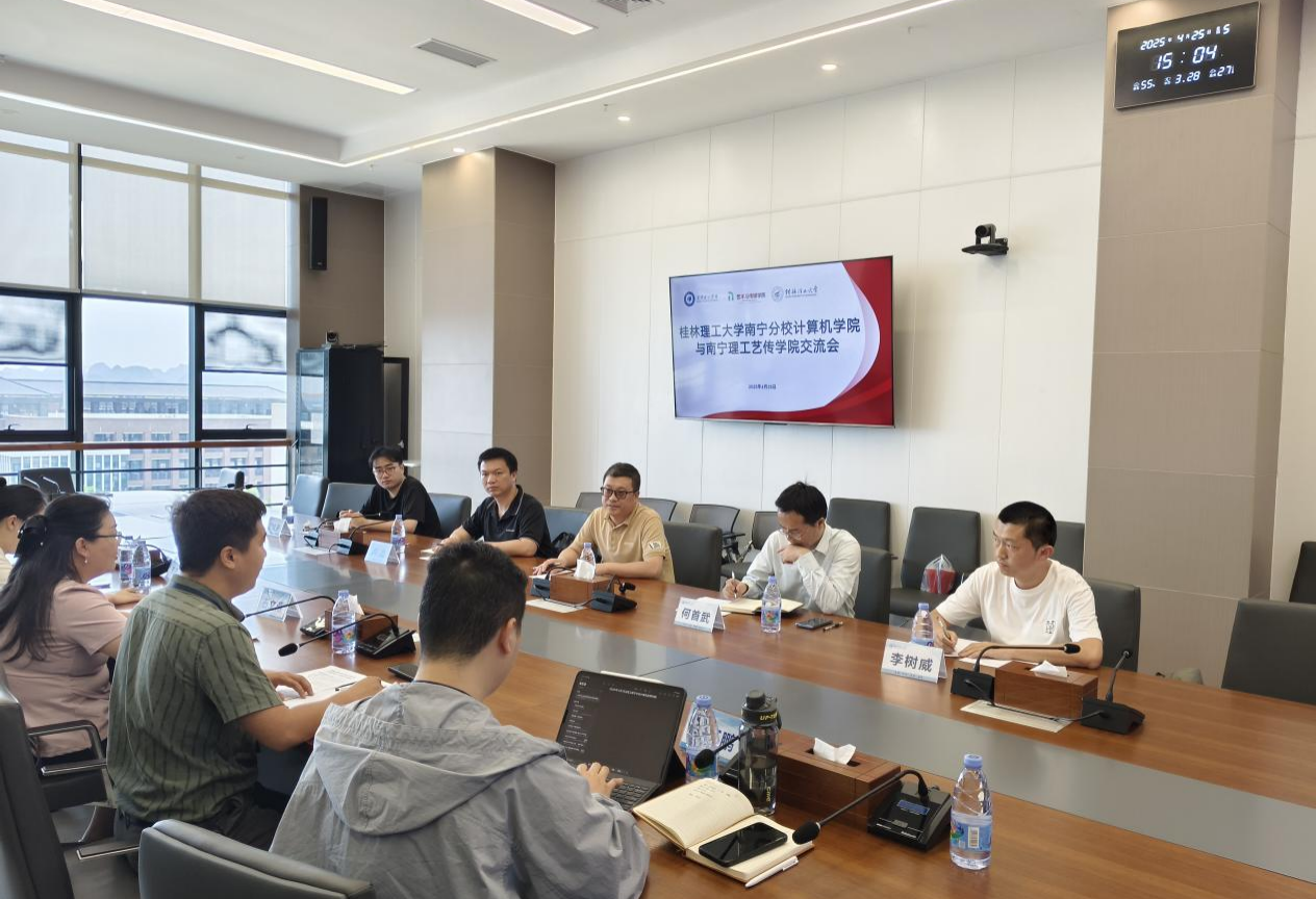 4月25日,桂林理工大学(南宁分校)教学管理部副主任曹庆云、计算机应用学院副院长何首武率团一行5人,莅临艺术与传媒学院开展交流活动,学院院长助理王高伟、广告媒体教研室主任石文燕及教师代表热情接待并参与座谈。双方围绕应用型人才培养、学科专业建设、实践教学创新等内容展开深度探讨。