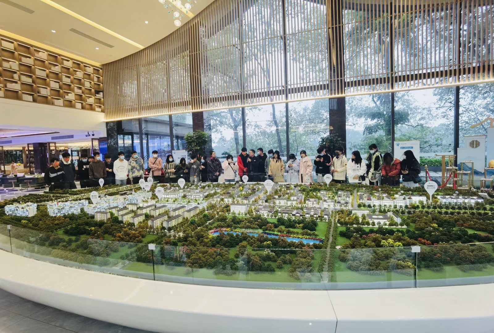 为了使实践教学能与理论教学相结合,环境设计专业课程在教学中,充分利用课程内实践课时,积极联系学校周边设计公司、企业,与正在开发并商业在售的桂林市“漓江大河坊”的售楼部主管积极联系,11月16日上午,环境设计教研室主任宋艳丽老师带领《小区景观设计》授课班级1908景观班学生集体参观了该小区的整体规划、售楼中心、沙盘展示、项目宣传片、别墅样板间设计、办公样板间设计,并以该项目的整体规划以及室内设计为真题作业,实现项目实际化应用。