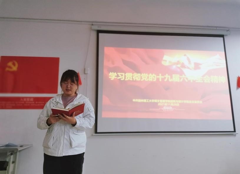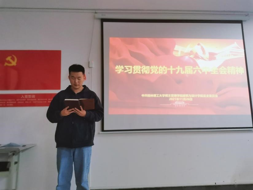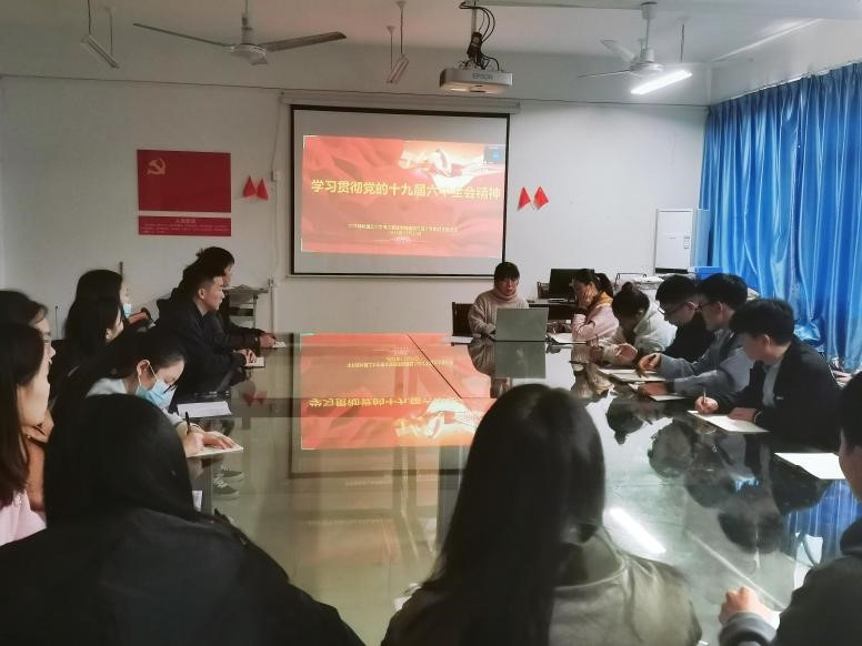 为深入学习党的十九届六中全会精神,深刻领悟习近平总书记关于基层党组织建设的重要论述,我院学生党支部于11月26日在3523党员活动室召开“学习党的十九届六中全会精神”专题学习会议,会议学习贯彻党的百年奋斗的重大成就和历史经验问题,传承红色精神,开启新的奋斗篇章,学院党建负责人杨正益、学生党支部书记以及全体学生党员以线下+线上形式参加会议,会议由学生第二党支部书记闫坤主持。