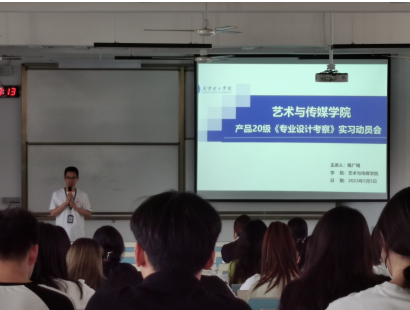 为扎实做好产品20级学生专业设计考察工作,产品设计专业于2023年5月5日在A3318召开了产品设计专业设计考察动员会。本次会议由艺术与传媒学院院长陈广明主持,专业设计考察带队教师与产品20级全部学生参加。