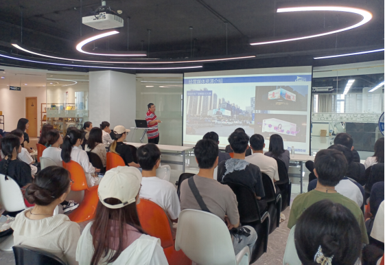 广西蓝图传媒成立于2008年,于2019年实现集团化。集团业务范围涵盖媒体广告发布、喷绘写真制作、创意设计、展览展会、策划执行、标识系统、软件开发等领域,是一家实力雄厚的综合型广告公司。集团旗下主要有四大户外媒体资源,即裸眼3D大屏、公交候车亭灯箱广告、出租车彩屏LED和出租车车身及后窗广告。其中裸眼3D大屏是集团2022年最新开发的重点项目,也是户外广告行业的最新科技成果。该公司热情接待了我院师生,并为我院视觉传达设计专业的学生举行了一场广告行业知识分享。通过该公司的董事长助理、策划和设计师的介绍及销售总监的案例讲解,向学生们科普了户外广告项目的完整商业流程。在广告发布过程中如何应对客户需求,运用何种设计软件进行创作,如何运用短视频等新媒体载体为客户提供更好的广告服务,这些工作实践中的宝贵经验让我院学生得到很多启发,收获良多。