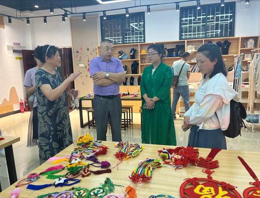 2023年6月28日上午,桂林市非遗中心书记、副主任李忠,桂林市文广旅局非遗科科长赵萌等领导专家一行6人,到我校中国结艺工作室进行桂林市非物质文化遗产保护传承工作实地调研。我校艺术与传媒学院副院长赵晶晶、桂北绳结艺术传承人石文燕老师接待桂林市非遗中心,文广旅局非遗科一行。