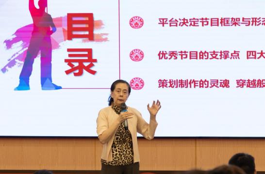 下午2点40,应红老师围绕“认知突围”主题展开电视节目制作专题讲座。讲座上,应红老师结合当下时代现状,举例杭州亚运会、《国家宝藏》等经典案例,提出电视节目制作选题要应时、应景、应人心。从突破传统思维框架、突破技术决定大脑思考、传媒新人的多维度思考模式、有个性化的深度学习四个方面进行详细讲解。同时指出优秀电视节目四要素:热点话题、强烈的视觉冲击、戏剧化的故事情节以及表达深度。