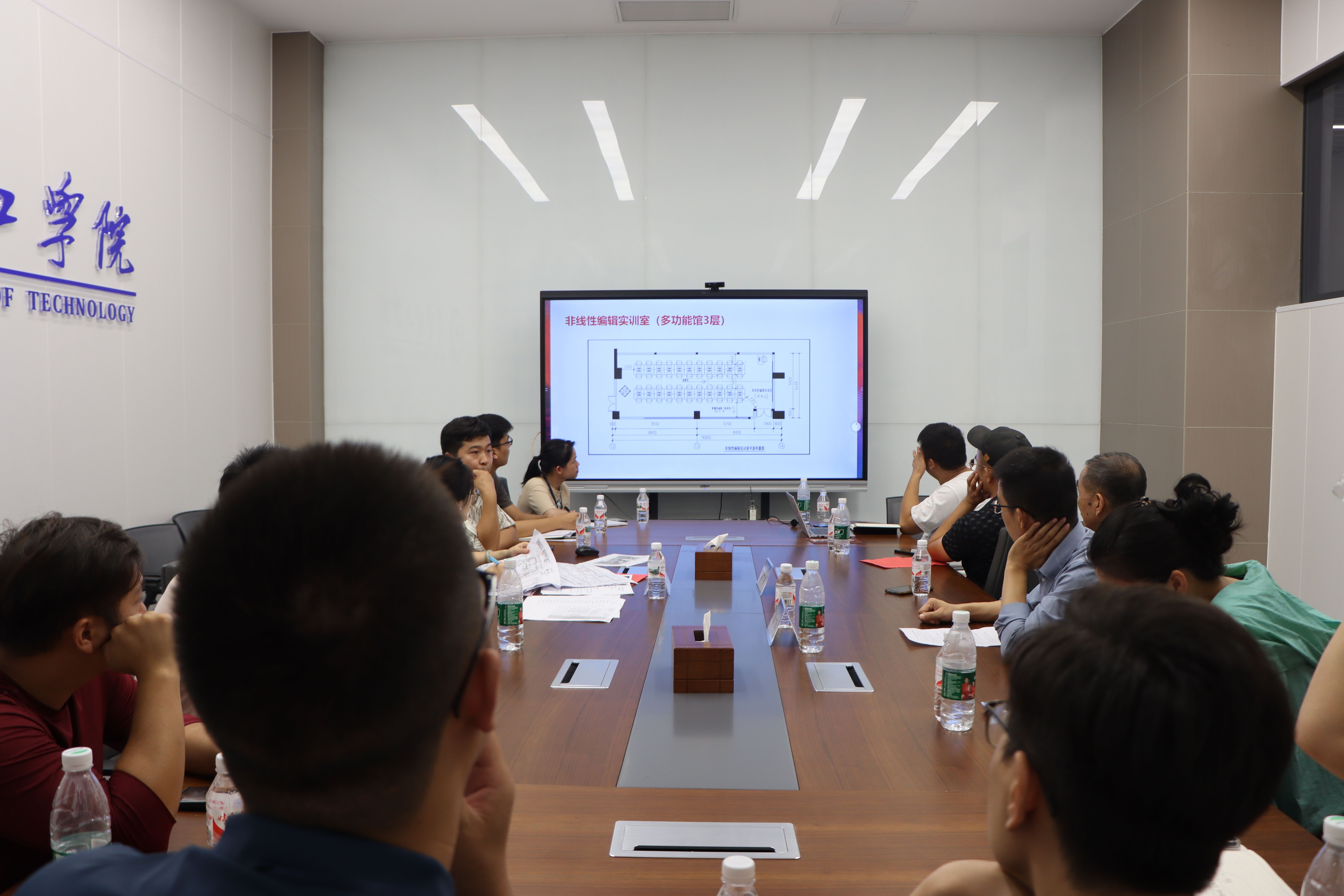 会议分为考察、介绍与讨论环节。在考察环节中,与会人员参观考察了多个实验室建设场地。随后,在图书馆30人会议室,王高伟主任代表南宁理工学院艺术与传媒学院进行了实验室设计背景及需求介绍,随后设计师代表展示了设计方案并提供了详细解释。