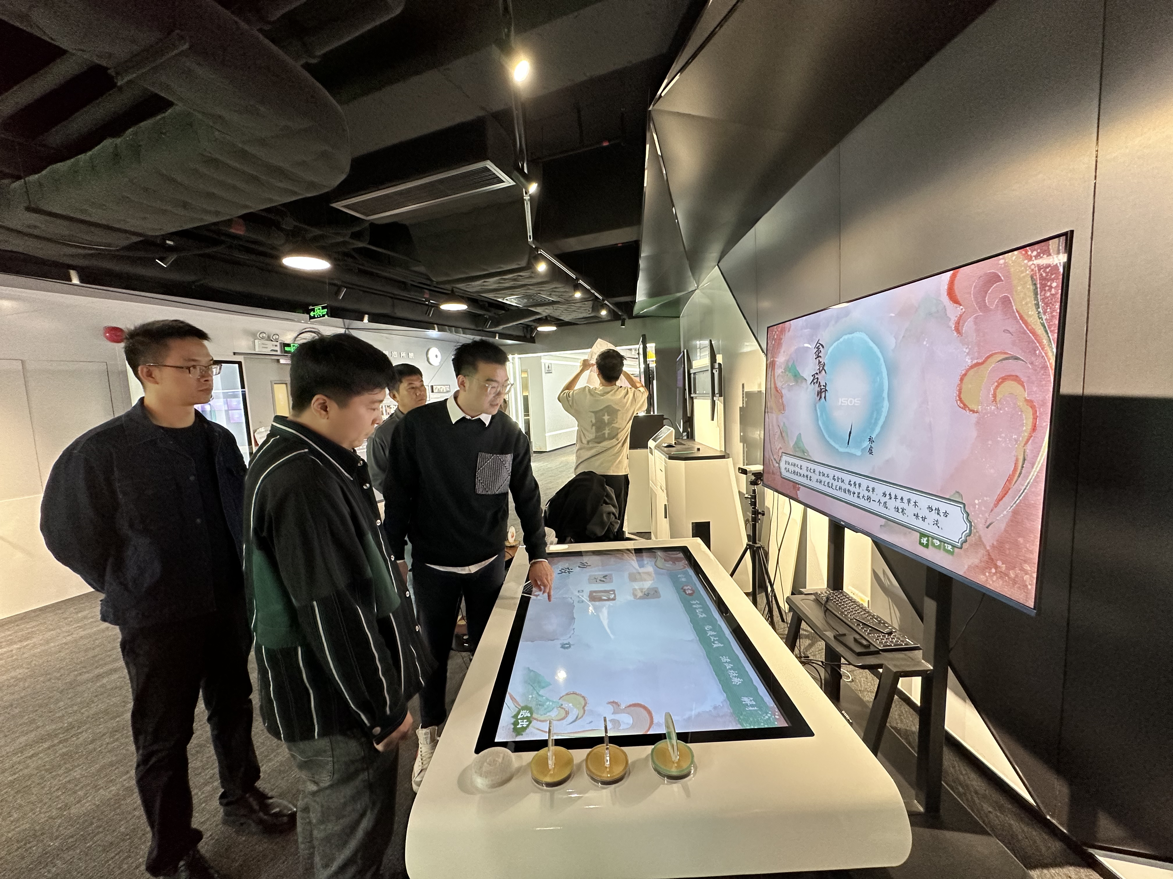 11月16日,考察团首先前往广州市番禺职业技术学院·科技艺术中心调研,参观了该中心的虚拟仿真实训中心、“现代时尚老字号技艺传承与科技创新”教学资源库、数字技术创意设计公共实训中心、创意工坊等,对高校如何将“艺术、创新、融合”紧密关联有了新的认识,切实了解了建立一个沉浸式、互动式交流中心对于高校师生的重要性以及如何打破专业边界让学生们真正的“学习在一起,研究在一起,生活在一起”。