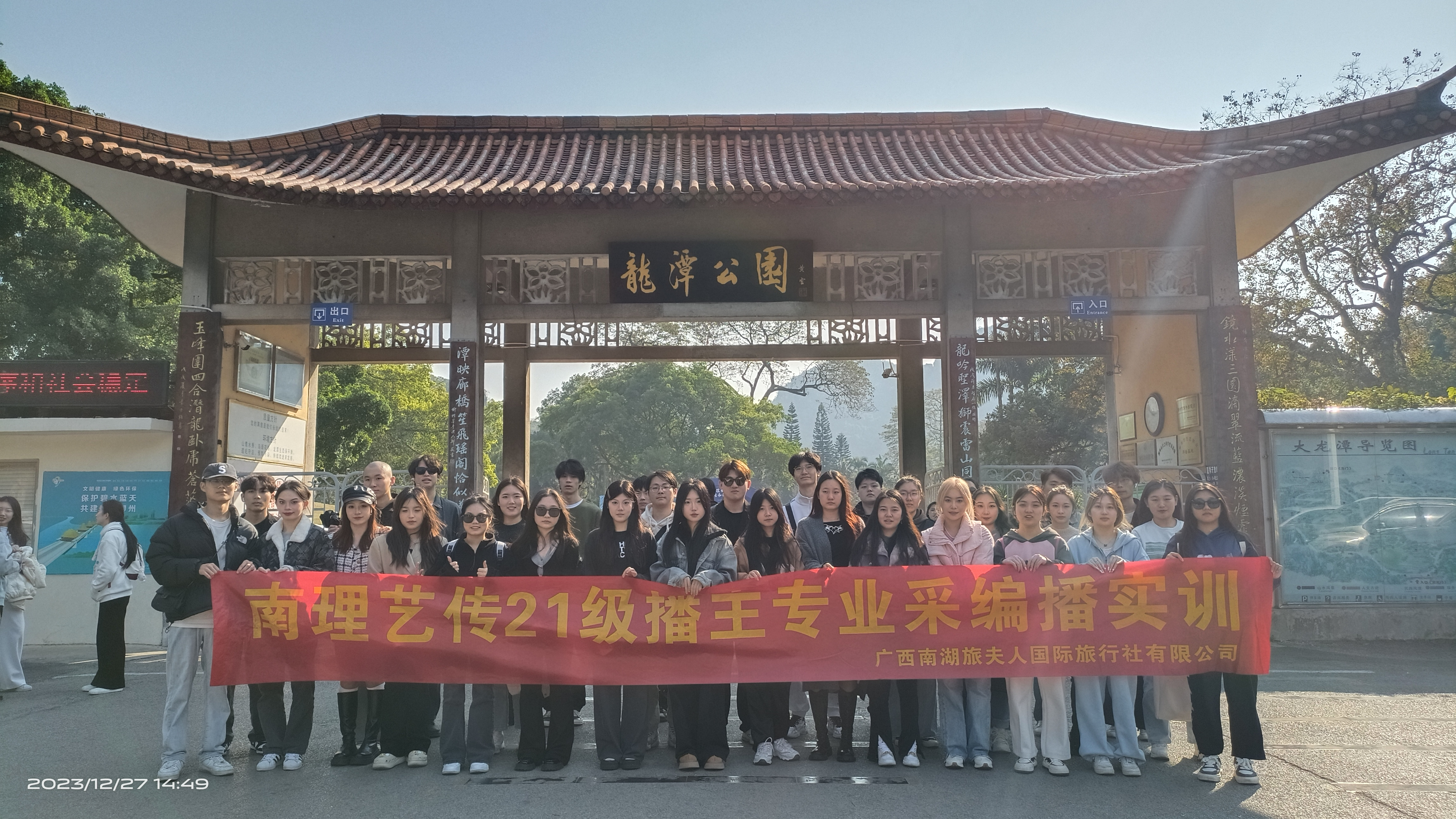 2023年12月27日,南宁理工学院艺术与传媒学院专业教师团队携播音与主持艺术学生共计209人顺利抵达采编播考察活动第三站,来到了柳州市白莲洞洞穴科学博物馆、龙潭公园等地。