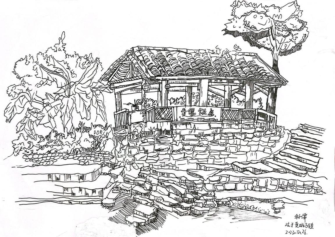 (图20:学生实地写生作品 环境设计2202班 邓德山)