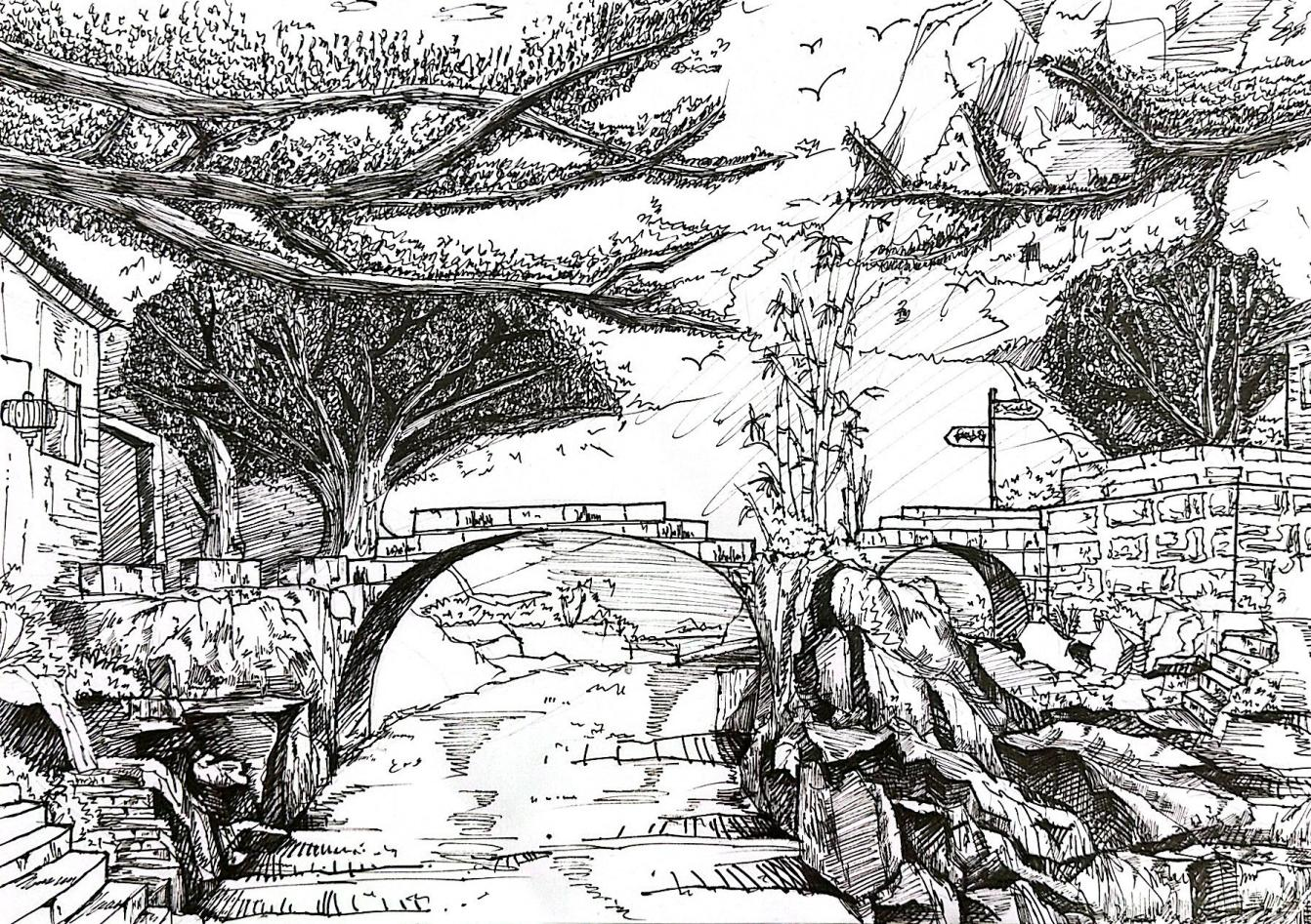 (图15:学生实地写生作品 环境设计2201班 陈文舒)