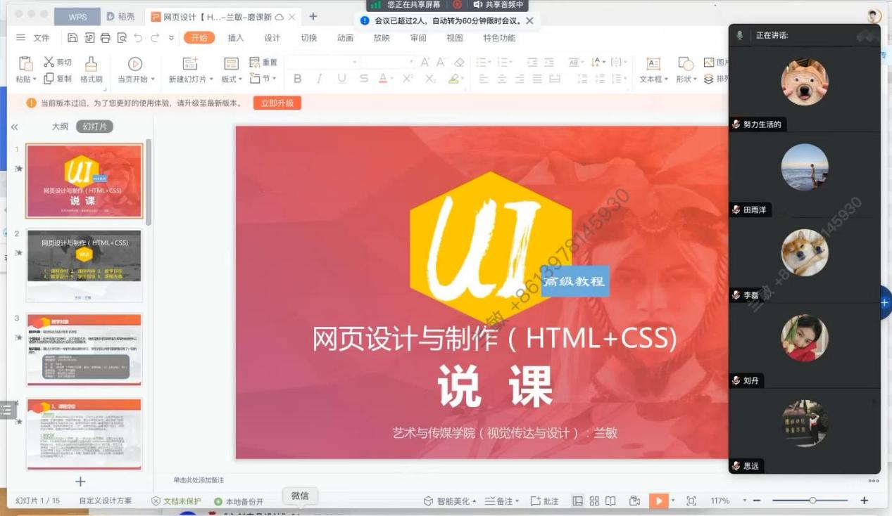 视觉传达教研室兰敏老师线上讲授《网页设计》课程