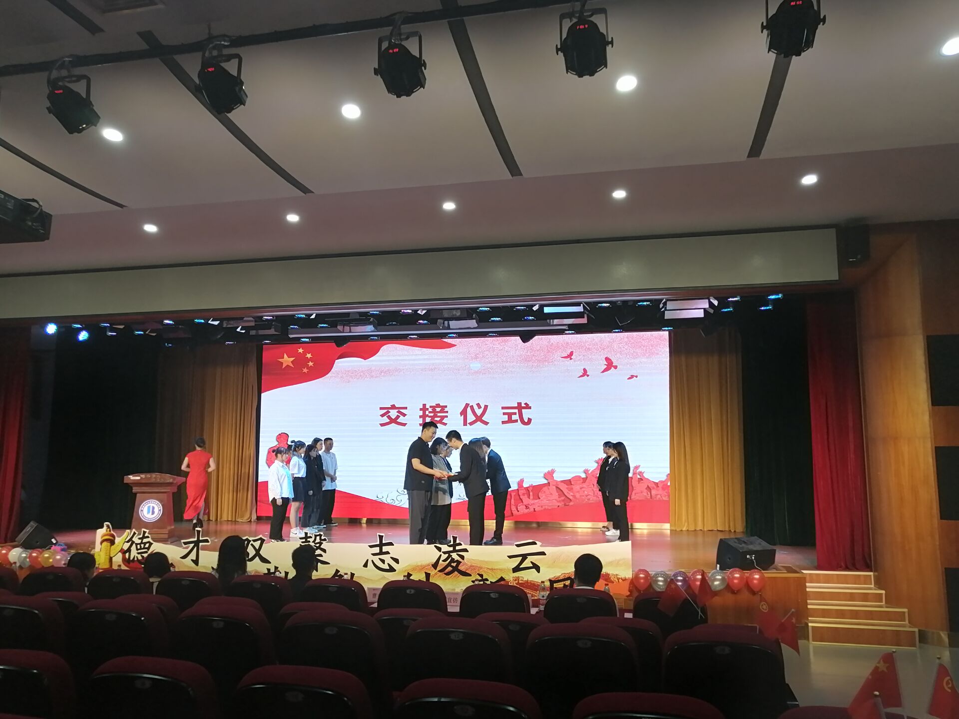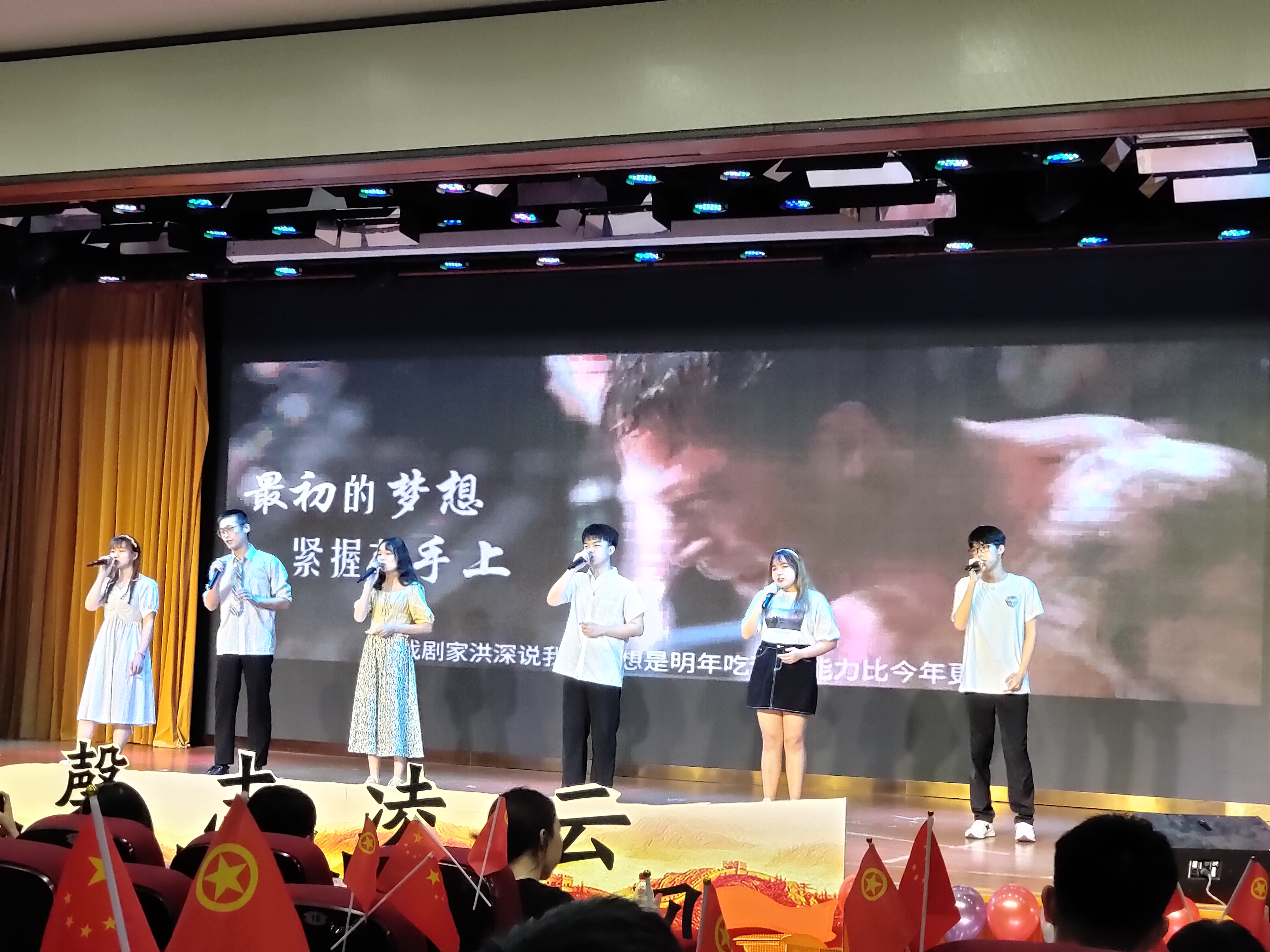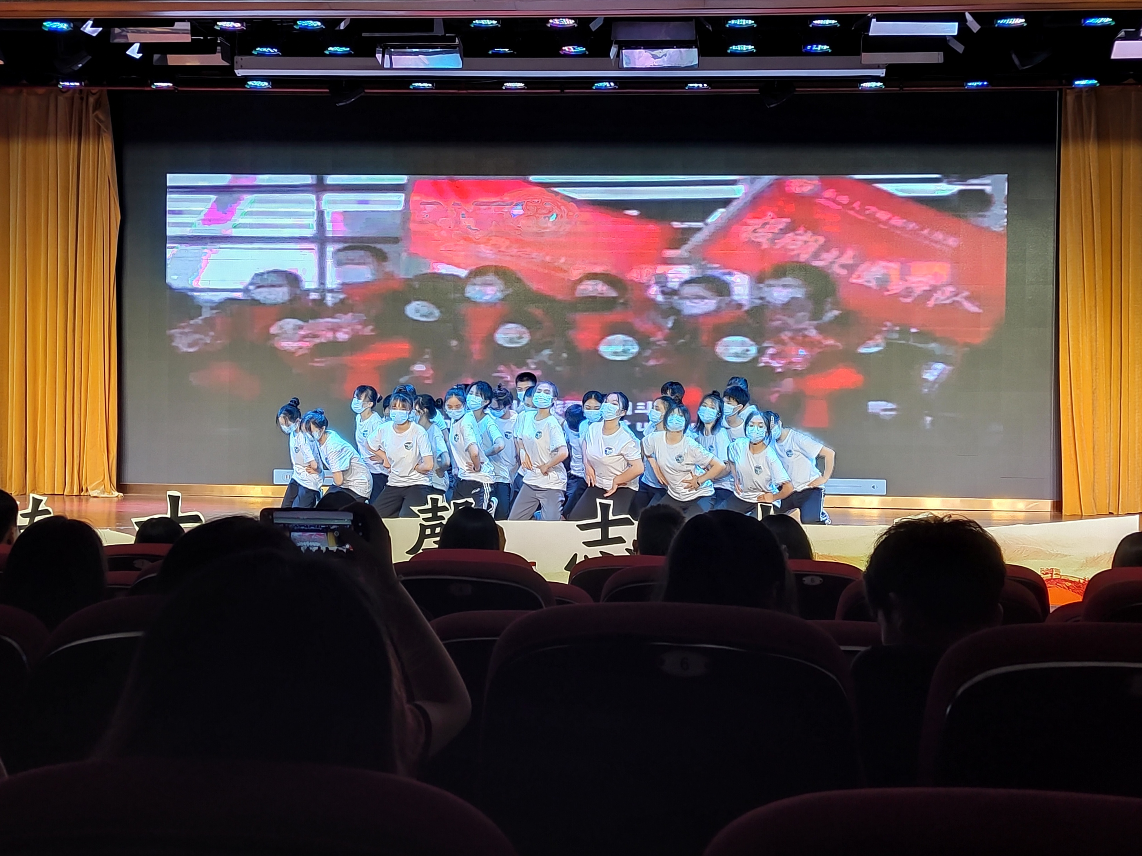 紧接着,汇演拉开了帷幕。同学们身着民族服饰,用优美的舞姿、嘹亮的歌声,这是民族与党的深切融合,还有的班级面戴口罩,舞动身体,带领我们回忆了抗疫之路,最后一个班级挥动着手指,点亮了祖国山水,呈现祖国发展的伟大宏图。在院级歌唱队初心的歌声中,我们来到学生会换届仪式环节。首先全体学生会成员奏唱团歌,展现了学生会无限的朝气,接下来由张若琪老师宣布新任主席团成员名单,并进入交接仪式,把学生会一脉相承的初心和使命交到新任主席手中,在前辈寄语中,有学长学姐对学弟学妹的期望,更有一丝丝不舍,在新任主席团成员宣誓中,我们听到了他们对工作的热爱以及初心。